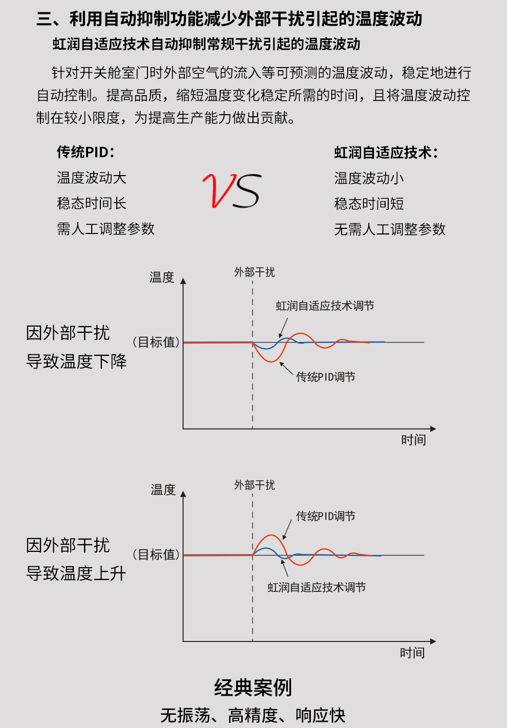 虹潤(rùn)公司是專業(yè)生產(chǎn)溫控器的國(guó)家專精特新“小巨人”企業(yè)。生產(chǎn)的傻瓜式智能溫控器,具有傻瓜式操作,真正人工智能算式,無(wú)需人工整定參數(shù),控制精度可達(dá)±0.1°C,高抗干擾等特點(diǎn)。產(chǎn)品獲得模糊PID控制儀及控制方法、人工智能調(diào)節(jié)器、智能化控制器、移相觸發(fā)控制器、閥門自動(dòng)手動(dòng)無(wú)擾動(dòng)操作控制方法及裝置等5項(xiàng)國(guó)家發(fā)明專利,主持起草工業(yè)過(guò)程控制系統(tǒng)用模擬輸入兩位或多位輸出儀表、物聯(lián)網(wǎng)智能溫度儀表通用技術(shù)條件、工業(yè)過(guò)程測(cè)量和控制系統(tǒng)用智能調(diào)節(jié)器等3項(xiàng)國(guó)家標(biāo)準(zhǔn),以及通信系統(tǒng)多通道數(shù)據(jù)采集控制終端規(guī)范軍用標(biāo)準(zhǔn),參與國(guó)際5G標(biāo)準(zhǔn)制定,取得傻瓜式模糊PID調(diào)節(jié)儀等3項(xiàng)相關(guān)軟件著作權(quán)。產(chǎn)品廣泛應(yīng)用于電力、石化,冶金、制藥、食品等幾乎所有工業(yè)現(xiàn)場(chǎng),實(shí)現(xiàn)精準(zhǔn)控溫,保障生產(chǎn)安全與質(zhì)量。