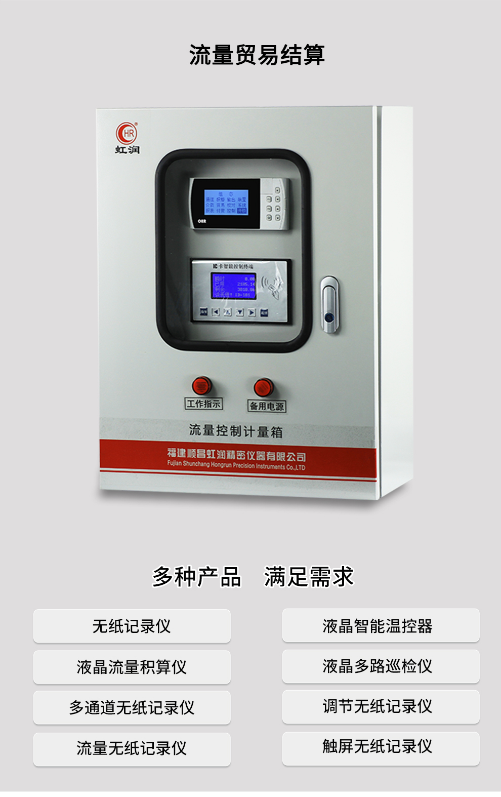 虹潤公司是專業(yè)生產(chǎn)流量積算儀的國家專精特新“小巨人”企業(yè)。生產(chǎn)的液晶熱(冷)量積算記錄儀,具有適配各類測量介質(zhì)及裝置,通道之間相互隔離,帶貿(mào)易結(jié)算功能,RS485/RS232通訊等特點。產(chǎn)品獲得一種流量積算儀、一種平板式無紙記錄儀等2項國家發(fā)明專利,主持起草物聯(lián)網(wǎng)智能記錄儀表通用技術(shù)條件、封閉管道中流體流量的測量、基于HART協(xié)議的電磁流量計等3項國家標準,以及通信系統(tǒng)多通道數(shù)據(jù)采集控制終端規(guī)范、艦船用電磁流量計等2項軍用標準,以及空間數(shù)據(jù)與信息數(shù)據(jù)傳輸系統(tǒng)等2項航天標準。參與國際5G標準制定,取得液晶流量熱能積算控制儀等4項相關(guān)軟件著作權(quán)。產(chǎn)品廣泛應(yīng)用于石化、冶金、制藥、環(huán)保能源、農(nóng)業(yè)灌溉、污水處理系統(tǒng)等諸多領(lǐng)域。