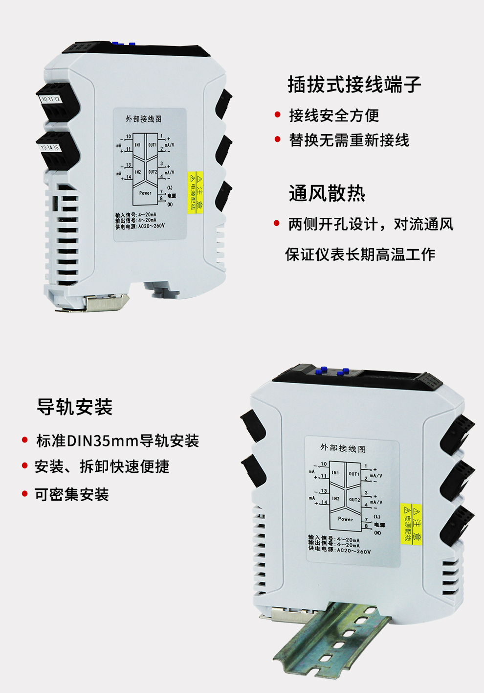 虹潤公司是專業(yè)生產(chǎn)隔離器的國家專精特新“小巨人”企業(yè)。生產(chǎn)的導軌式智能隔離器 ,具有高清顯示單元,參數(shù)可設置,寬電源供電,響應快,帶RS485通訊等特點。產(chǎn)品獲得信號隔離器、一種二端子模塊、無源信號隔離器等3項國家發(fā)明專利,主持起草現(xiàn)場設備工具(FDT)接口規(guī)范、工業(yè)過程測量和控制系統(tǒng)用隔離式安全柵、工業(yè)過程測量和控制系統(tǒng)用配電器等3項國家標準,以及通信系統(tǒng)多通道數(shù)據(jù)采集控制終端規(guī)范軍用標準,參與國際5G標準制定,取得智能隔離器等2項相關軟件著作權(quán)。產(chǎn)品廣泛應用于電力、石化,冶金、制藥、水處理、機械配套等各種工業(yè)現(xiàn)場。