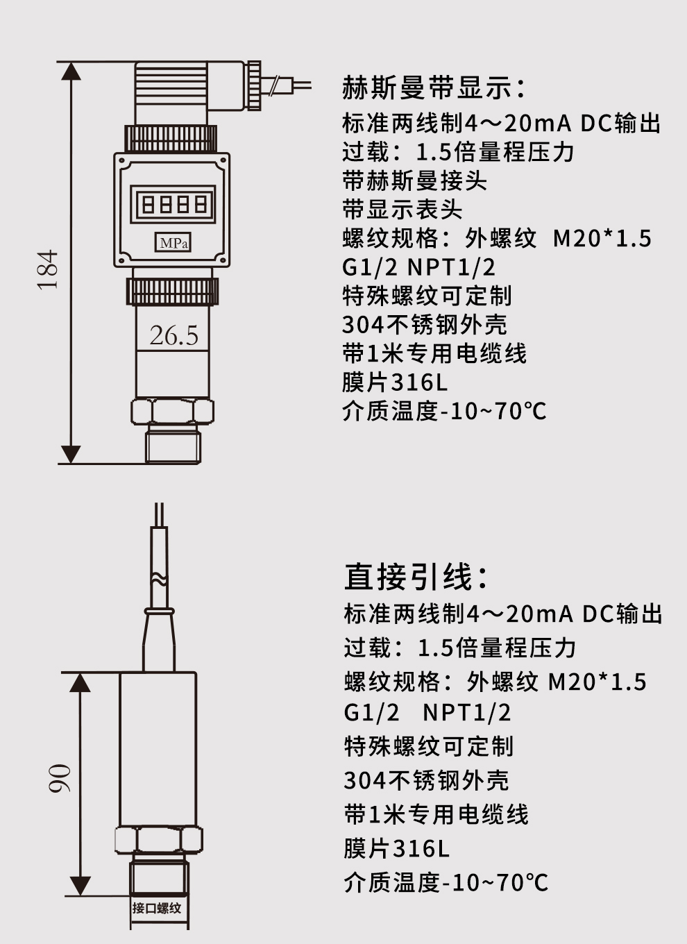 虹潤公司是專業(yè)生產壓力變送器的國家專精特新“小巨人”企業(yè),生產的小巧型壓力變送器,具有采用進口芯體,量程范圍寬,抗沖擊抗震動,多種螺紋接口,性能穩(wěn)定等特點。產品獲得一種數字顯示低功耗壓力表、一種信號發(fā)生器裝置等2項國家發(fā)明專利,主持起草工業(yè)過程控制系統(tǒng)用模擬輸入兩位或多位輸出儀表、工業(yè)過程測量和控制系統(tǒng)用壓力/差壓變送器等2項國家標準,通信系統(tǒng)多通道數據采集控制終端規(guī)范軍用標準,以及現場設備集成等5項智能制造國家標準,參與國際5G標準制定,取得數顯壓力表等2項相關軟件著作權。產品廣泛應用于化工、食品、制藥、電力、設備配套、供暖、水處理、樓宇等行業(yè),需精準測量流體壓力的現場。