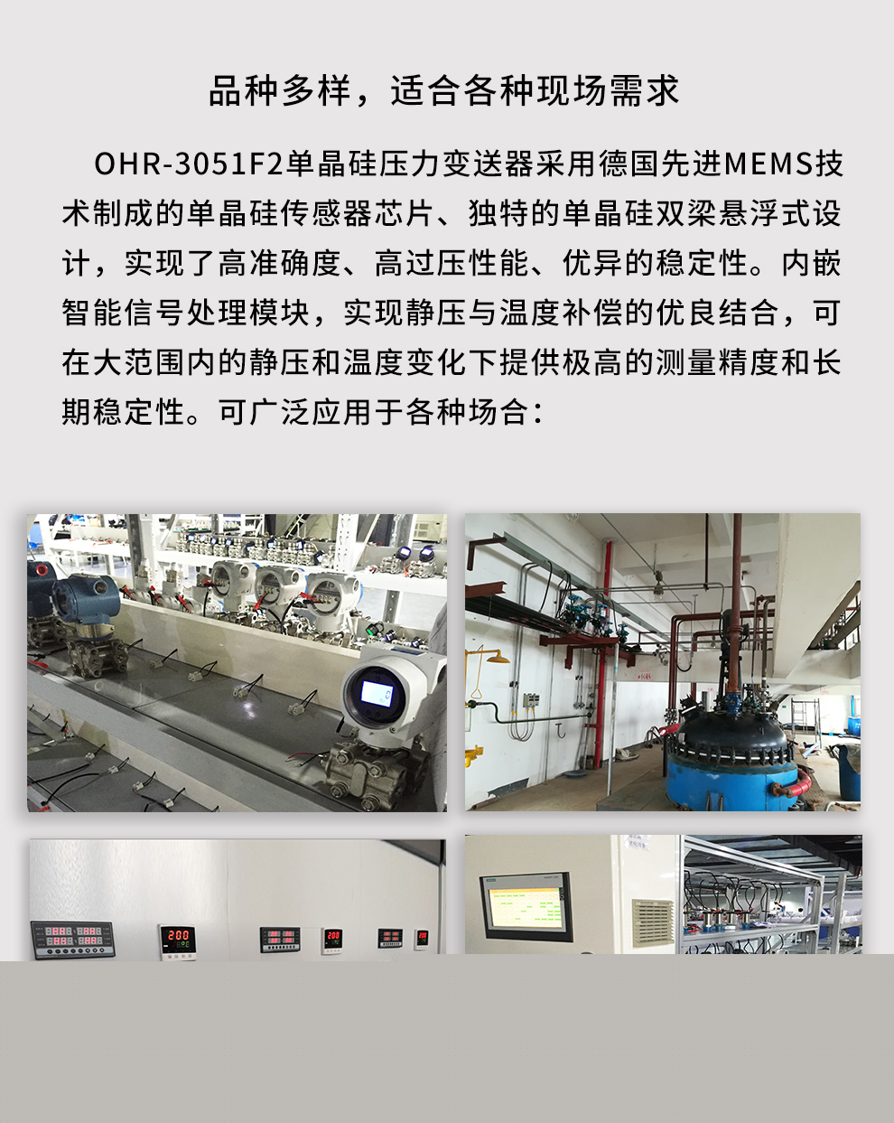 虹潤公司是專業(yè)生產(chǎn)壓力變送器的國家專精特新“小巨人”企業(yè),生產(chǎn)的單晶硅壓力變送器,具有高精度,小溫漂,性能穩(wěn)定,帶HART通訊,抗干擾能力強,自診斷功能等特點。產(chǎn)品獲得一種數(shù)字顯示低功耗壓力表、一種信號發(fā)生器裝置等2項國家發(fā)明專利,主持起草工業(yè)過程控制系統(tǒng)用模擬輸入兩位或多位輸出儀表、工業(yè)過程測量和控制系統(tǒng)用壓力/差壓變送器等2項國家標(biāo)準(zhǔn),通信系統(tǒng)多通道數(shù)據(jù)采集控制終端規(guī)范軍用標(biāo)準(zhǔn),以及現(xiàn)場設(shè)備集成等5項智能制造國家標(biāo)準(zhǔn)。參與國際5G標(biāo)準(zhǔn)制定,取得數(shù)顯壓力表等2項相關(guān)軟件著作權(quán)。產(chǎn)品廣泛應(yīng)用于化工、食品、制藥、電力、設(shè)備配套、供暖、水處理、樓宇等行業(yè),需精準(zhǔn)測量流體壓力的現(xiàn)場。