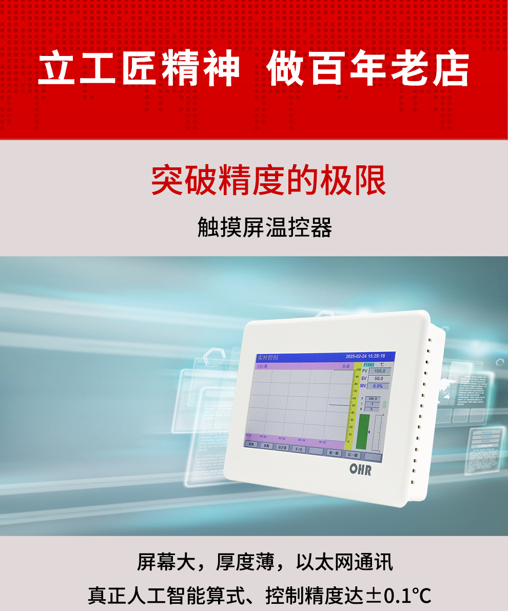 虹潤公司是專業(yè)生產(chǎn)無紙記錄儀的國家專精特新“小巨人”企業(yè)。生產(chǎn)的觸摸屏溫控器,具有觸摸大屏顯示,真正人工智能算式,無需人工整定參數(shù),控制精度達士0.1°C, RS485/以太網(wǎng)通訊,5/7/9英寸可選等特點。產(chǎn)品獲得智能化控制器、人工智能調(diào)節(jié)器及調(diào)節(jié)方法、模糊PID控制儀及控制方法、平板無紙記錄儀、巡回檢測顯示方法及裝置等5項國家發(fā)明專利,主持起草物聯(lián)網(wǎng)智能記錄儀表通用技術(shù)條件、物聯(lián)網(wǎng)智能溫度儀表通用技術(shù)條件、工業(yè)過程測量和控制系統(tǒng)用智能調(diào)節(jié)器等3項國家標(biāo)準,通信系統(tǒng)多通道數(shù)據(jù)采集控制終端規(guī)范軍用標(biāo)準,以及空間數(shù)據(jù)與信息數(shù)據(jù)傳輸系統(tǒng)等2項航天標(biāo)準,參與國際5G標(biāo)準制定,取得觸摸屏彩色調(diào)節(jié)無紙記錄儀等3項相關(guān)軟件著作權(quán)。產(chǎn)品廣泛應(yīng)用于電力、石化、冶金、化工、食品、制藥、熱處理、水處理、機械配套等諸多領(lǐng)域。