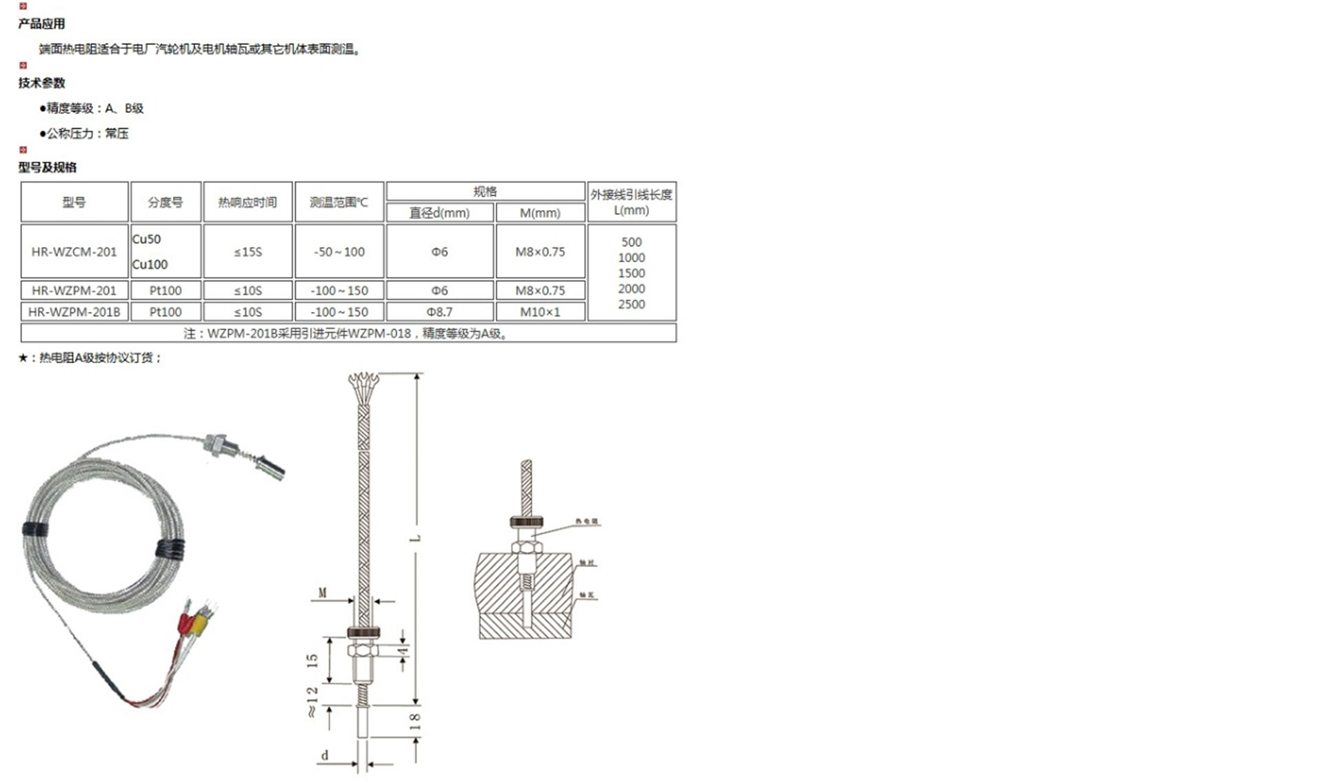 端面熱電阻元件由特殊處理的絲材(銅或鉑絲)繞制,它們緊巾在溫度計前端,與一般軸向熱電阻相比,端面熱電阻能更正確和迅速地反映被測端面的實(shí)際溫度狀況,它的制作方法很多,品種形式多樣,適合于電廠汽輪機(jī)及電機(jī)軸瓦或其它機(jī)體表面測溫。
